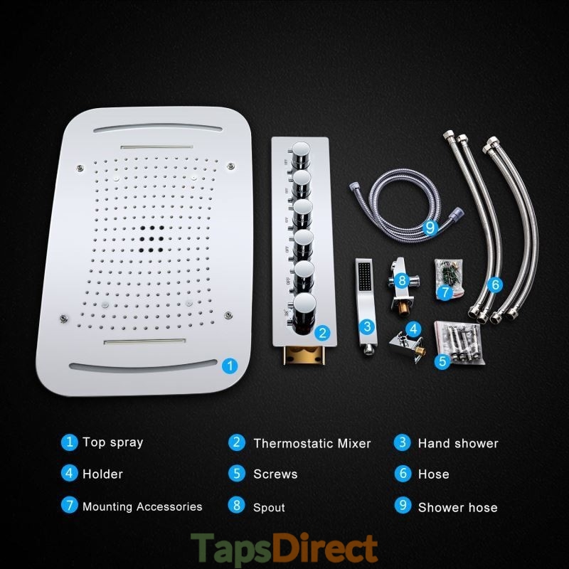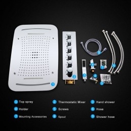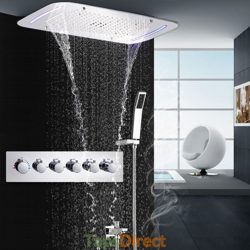 Multi Function Chrome LED Thermostatic Shower Set with Concealed Shower Tap System