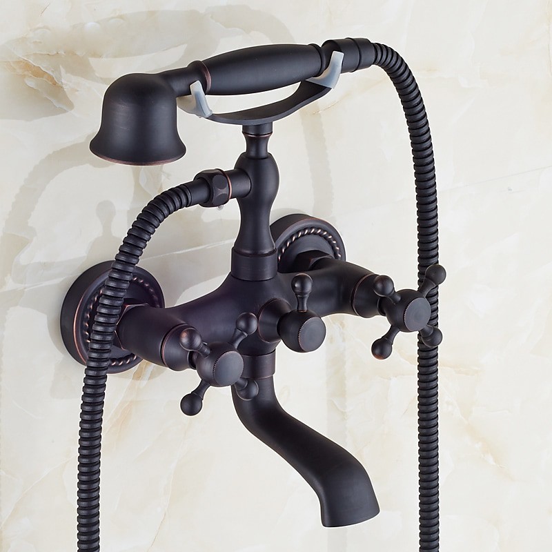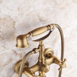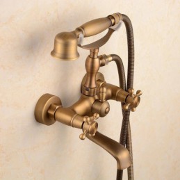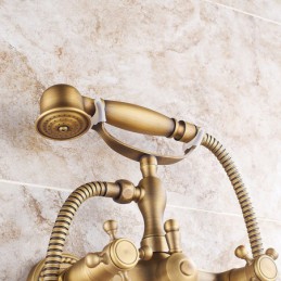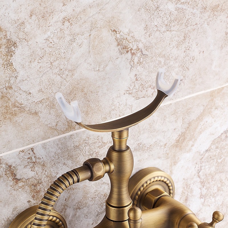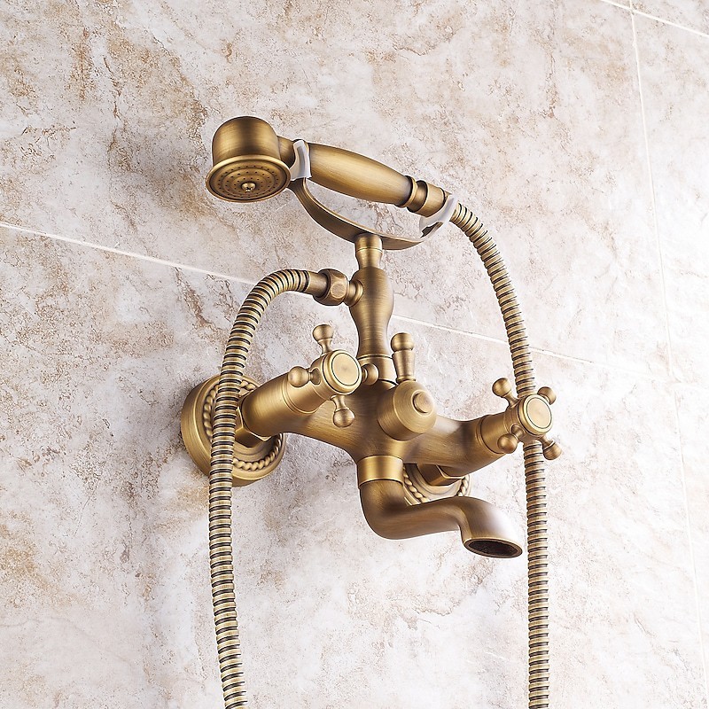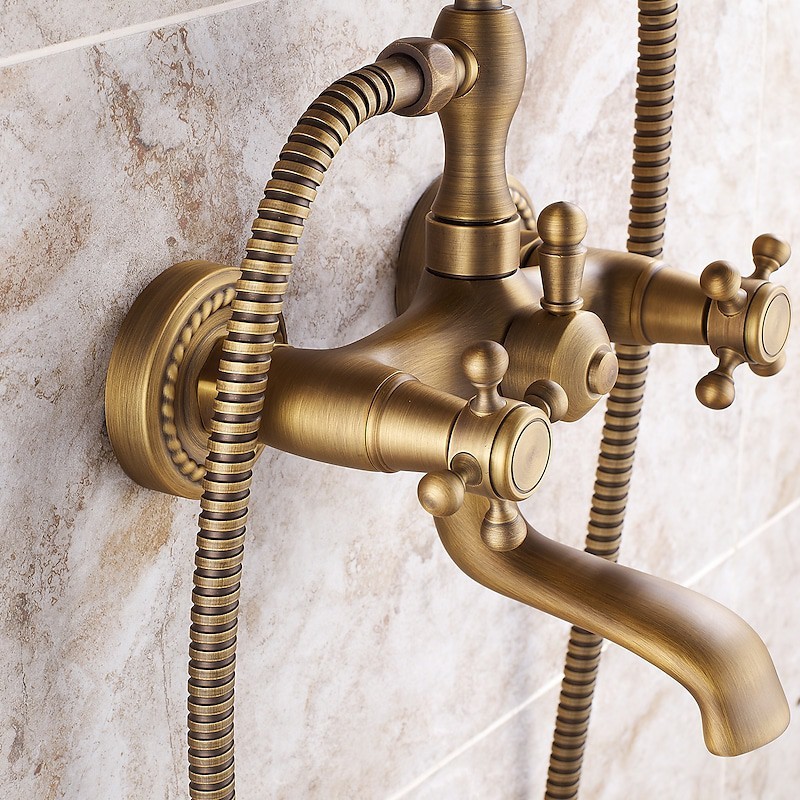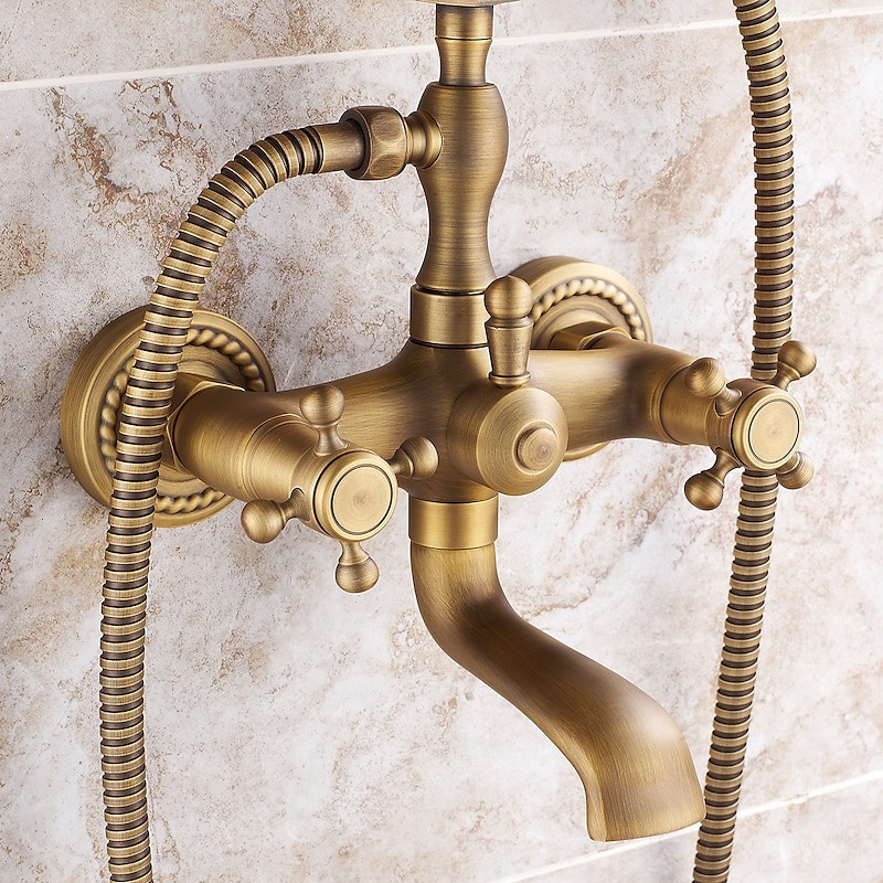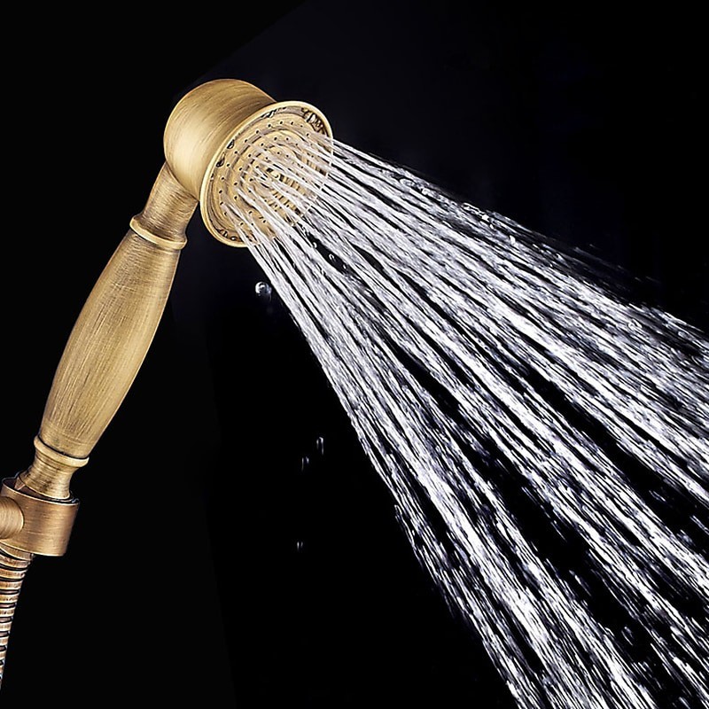 Style: Vintage Style, Country, Features: Handshower Included, pullout, Faucet Type: Rainfall Shower Head System, Shower Faucet, Installation Type: Mount Outside, Number Of Handles: Two Handles, Cold and Hot Switch: Yes, Valve Type: Ceramic Valve, Finish: Antique Brass, Electroplated, Special selected products: COD,