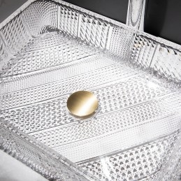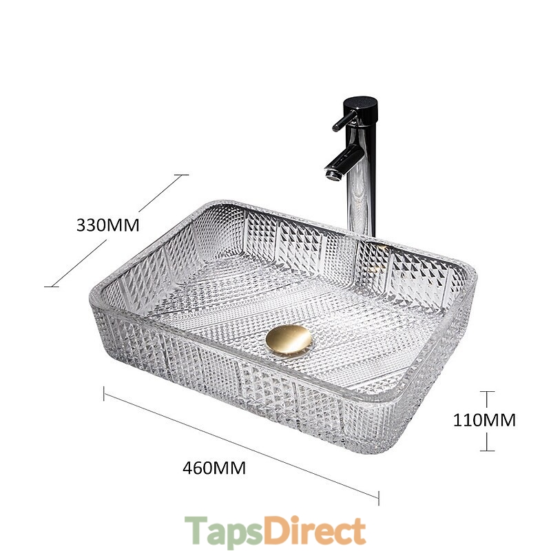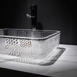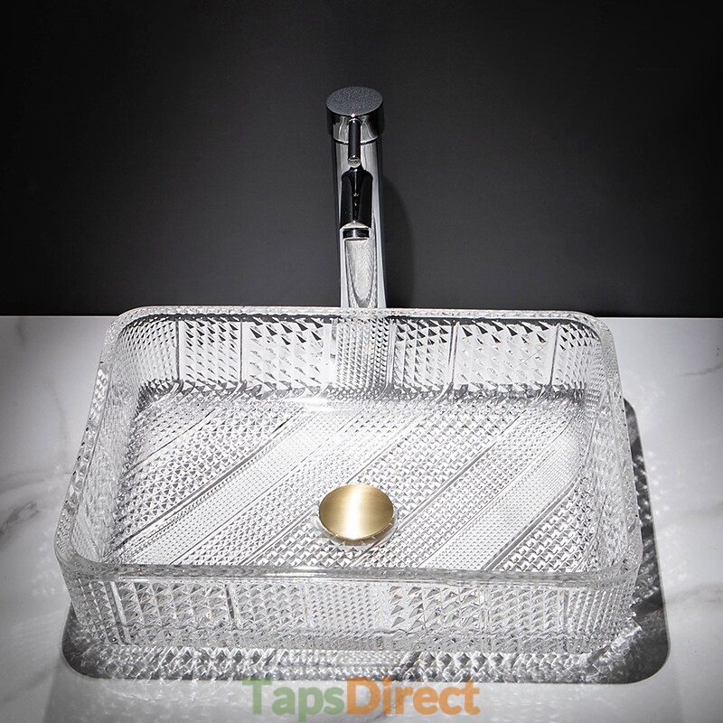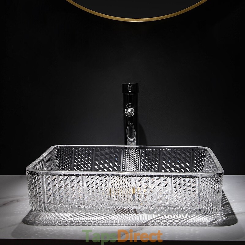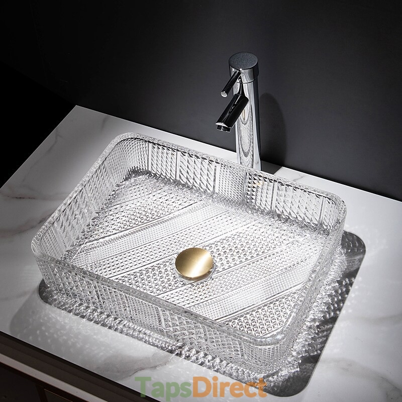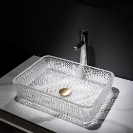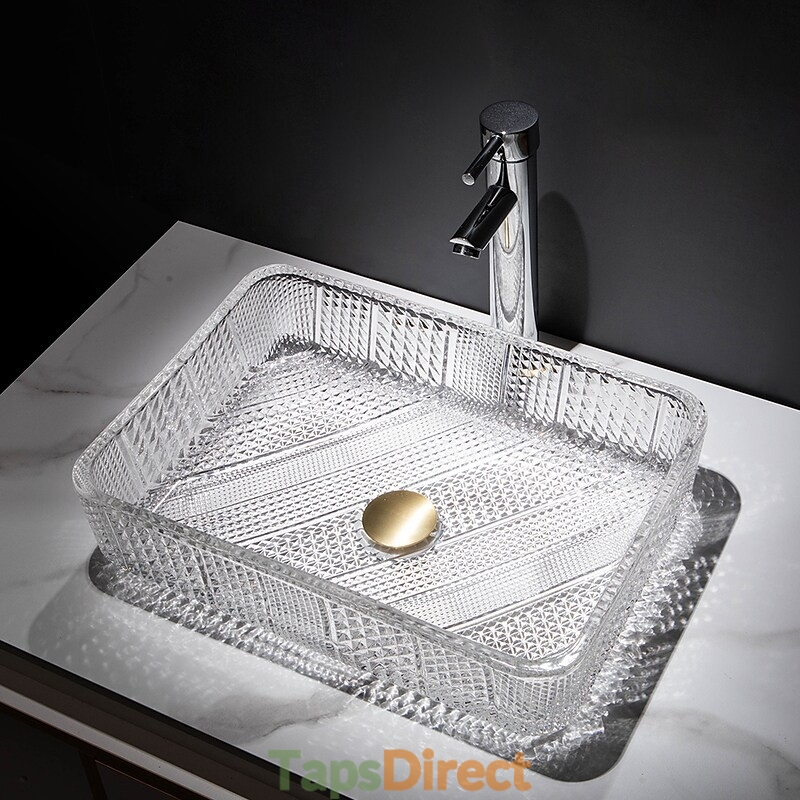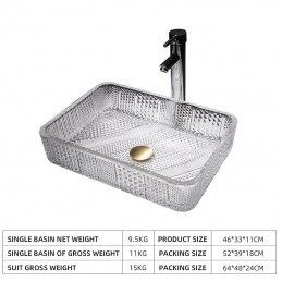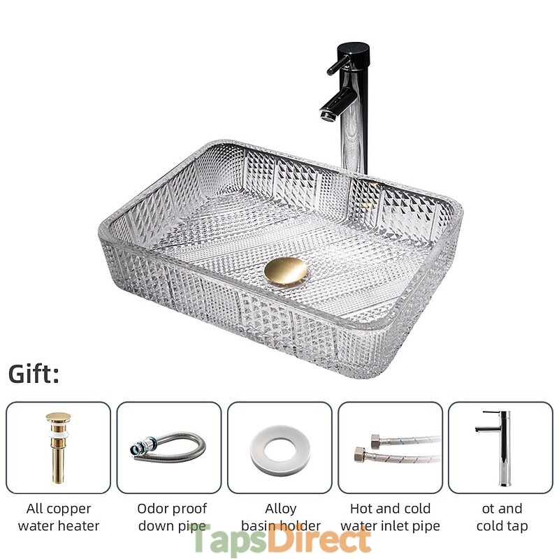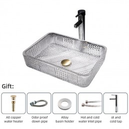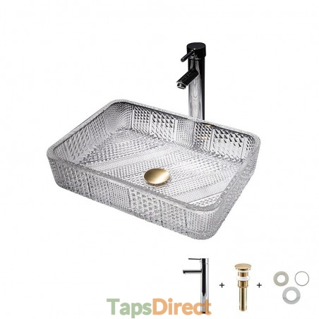 Style:Contemporary,Faucet Finish:Chrome,Water Drain Finish:Chrome,Mounting Ring Finish:Chrome,Sink Material:Glass,Water Drain Material:Brass,Mounting Ring Material:Zinc Alloy,Sink Shape:Rectangular,Faucet Body Material:Brass,Net Weight (kg):9.5,Shipping Weight (kg):15,What's in the box:Bathroom Mounting Ring,Bathroom Faucet,Bathroom Sink,Bathroom Water Drain,