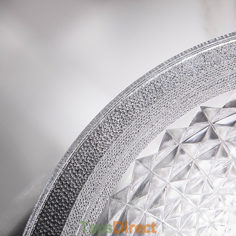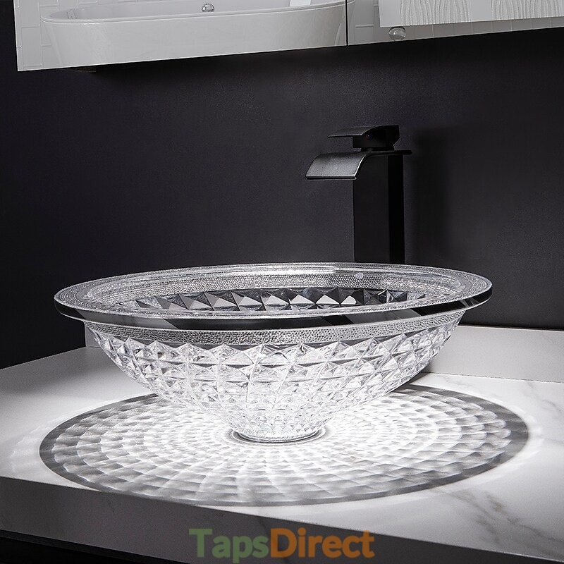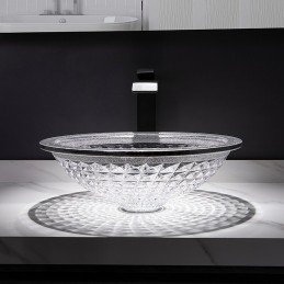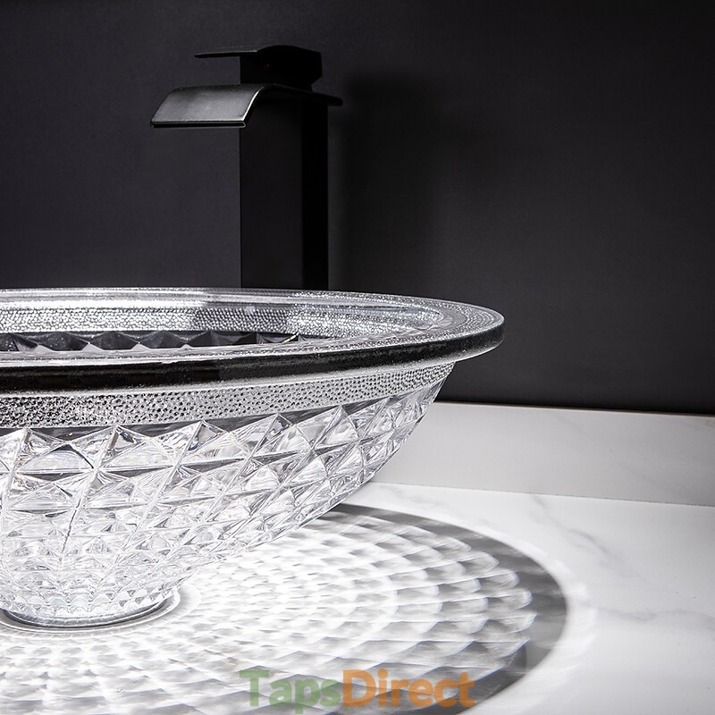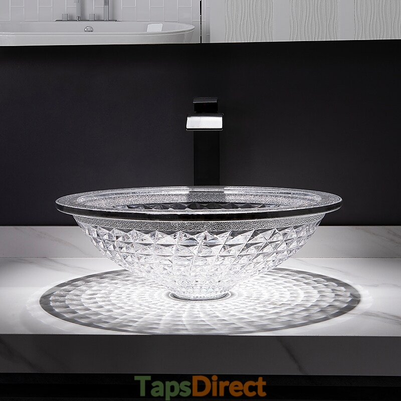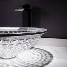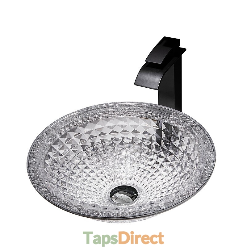 Style:Contemporary,Water Drain Finish:Chrome,Mounting Ring Finish:Chrome,Sink Material:Glass,Water Drain Material:Brass,Mounting Ring Material:Zinc Alloy,Sink Shape:Bowl,Faucet Body Material:Brass,Net Weight (kg):6,Shipping Weight (kg):8,Dimension (cm):41.5*41.5*14,What's in the box:Bathroom Mounting Ring,Bathroom Faucet,Bathroom Sink,Bathroom Water Drain,