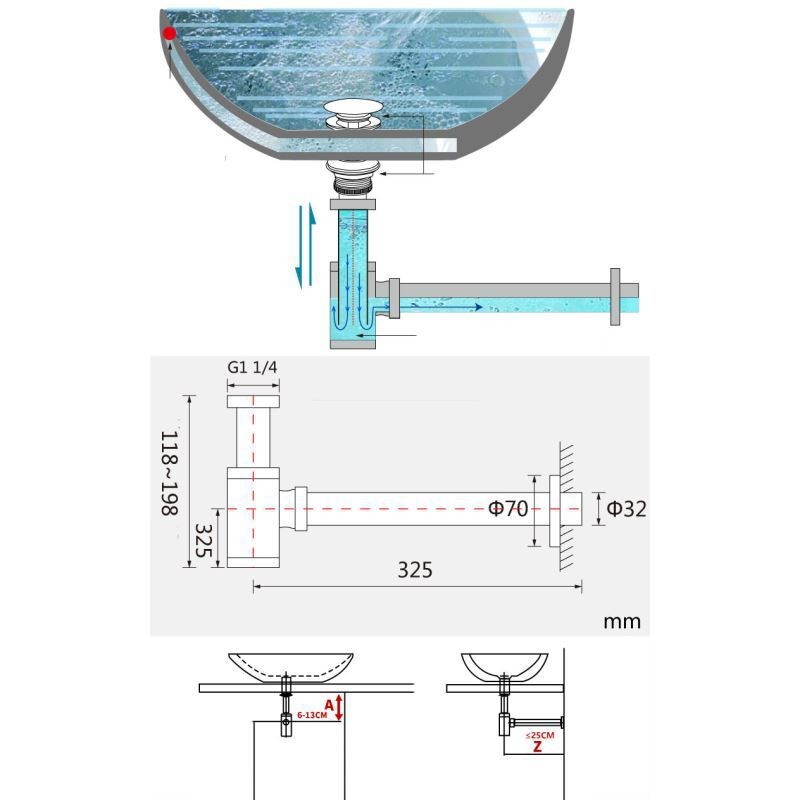 Black Waste Bottle Trap for Bathroom Basin Vanity Cabinet